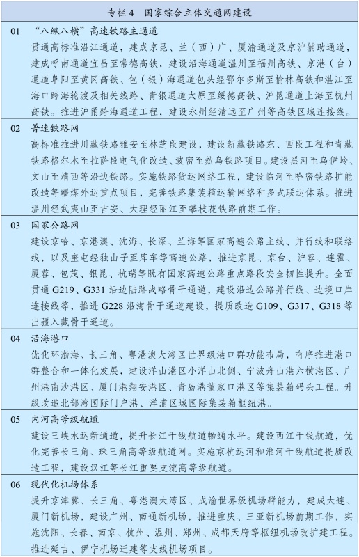 加强港澳与内地经贸、科技、人文等合作,完善便利港澳居民在内地发展和生活政策措施。有序推进与内地金融市场互联互通,深化与内地产学研创新协同。深化粤港澳合作,持续推动重点领域合作实现突破,促进港口、机场和轨道交通协同发展,建设广州至珠海(澳门)高铁,推进港深西部铁路前期工作。深化琴澳一体化发展,高质量建设前海、南沙、河套等重大合作平台。建设澳门国际机场横琴前置货站,推进澳琴国际教育(大学)城建设,支持澳门高校在横琴延伸办学。健全香港、澳门在国家对外开放中更好发挥作用机制,支持港澳深度参与高质量共建“一带一路”,发挥专业服务优势协助企业“走出去”。发挥港澳在中西文明交流互鉴中的重要窗口作用。