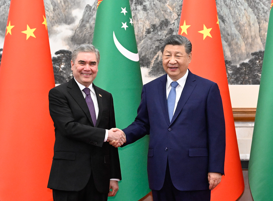 3月18日下午,国家主席习近平在北京钓鱼台国宾馆会见来华进行友好访问的土库曼斯坦民族领袖、人民委员会主席别尔德穆哈梅多夫。